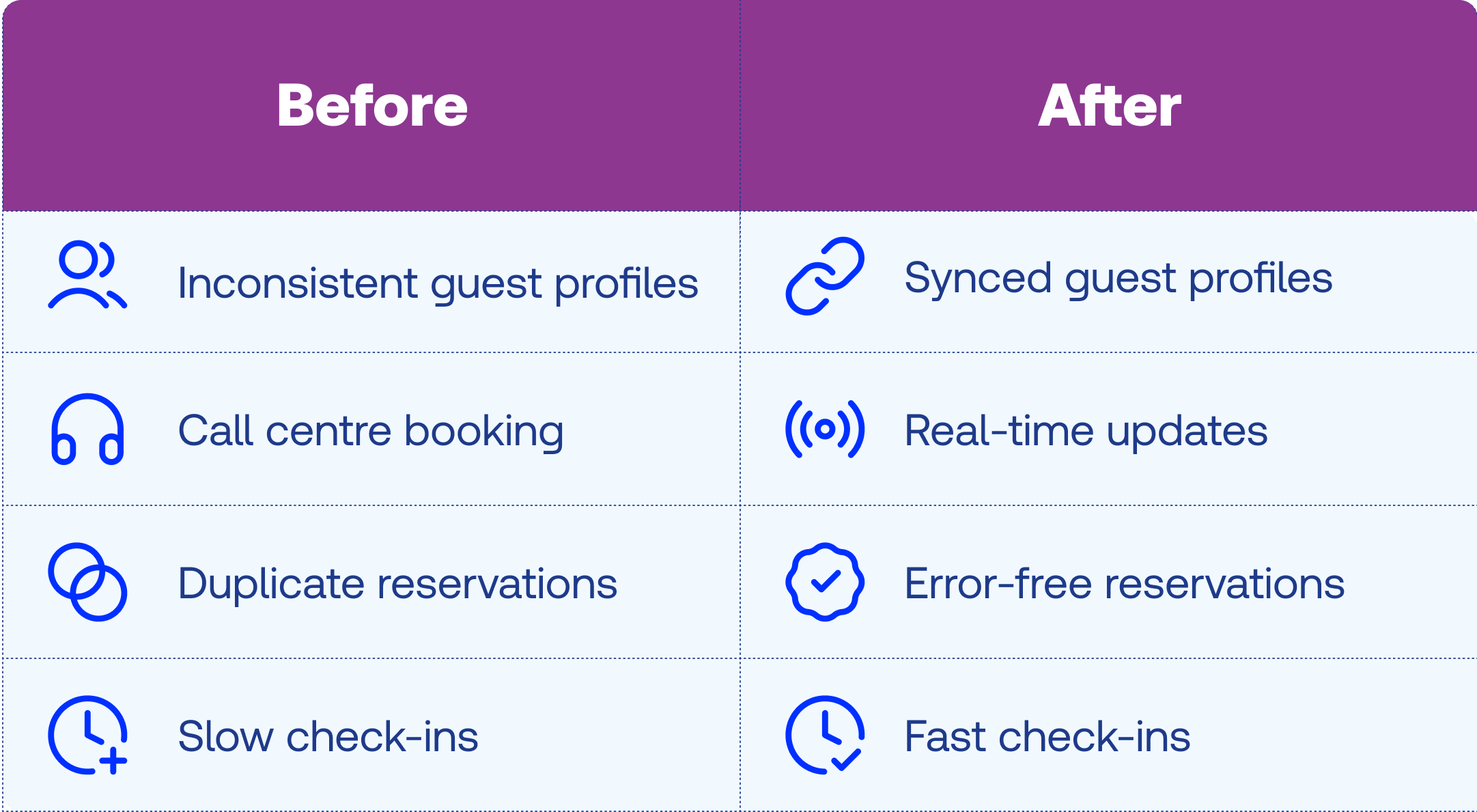 The previous reliance on a call centre-based booking process frequently led to inconsistent guest profiles, delayed updates, and duplicated or missed reservations. These inefficiencies not only impacted accuracy but also created friction in the guest journey.